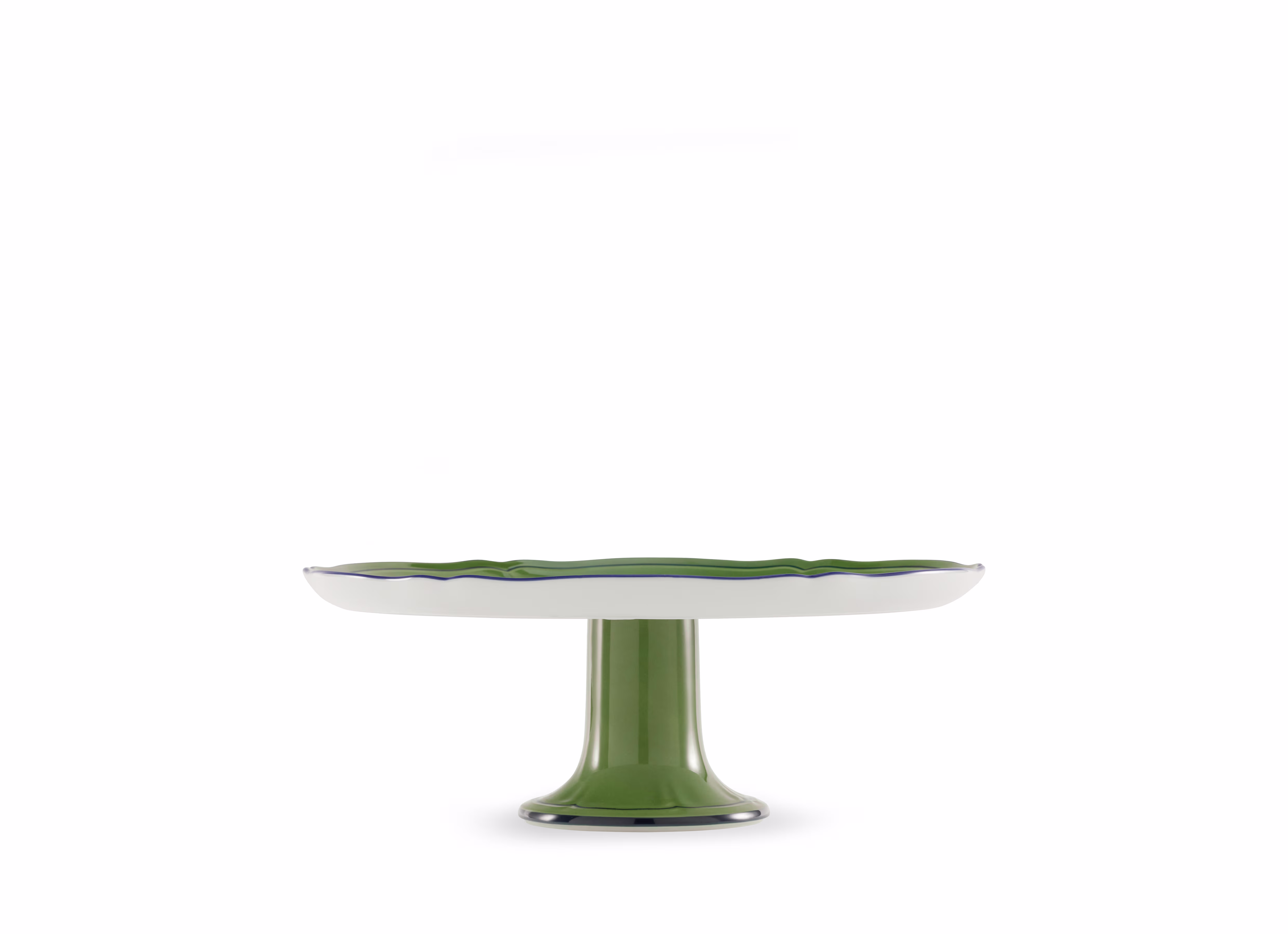Alzata per torta con decoro verde Malachite e filettatura blu. Collezione Oriente Italiano.